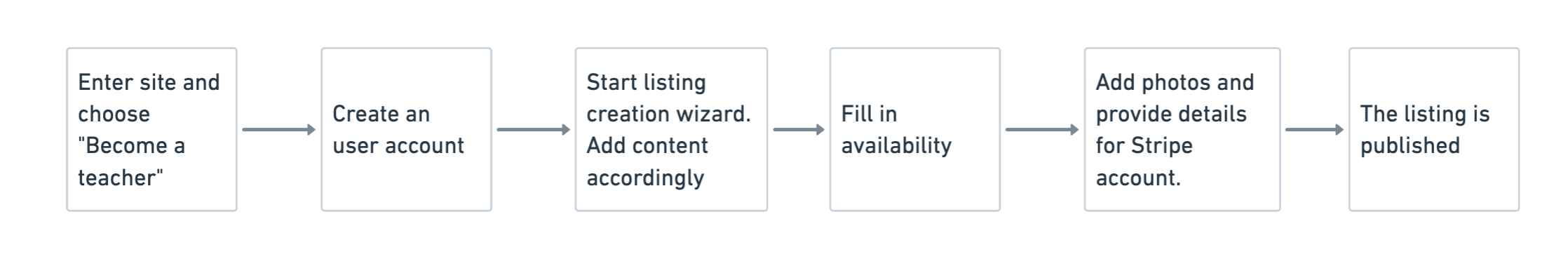 Yogatime offers a starting point for how users create listing profiles, discover providers, and transact on your custom service booking marketplace. Designing your own marketplace’s journeys helps developers understand how to modify this template starting point to build your custom marketplace. The next article guides you in creating your own user journey.