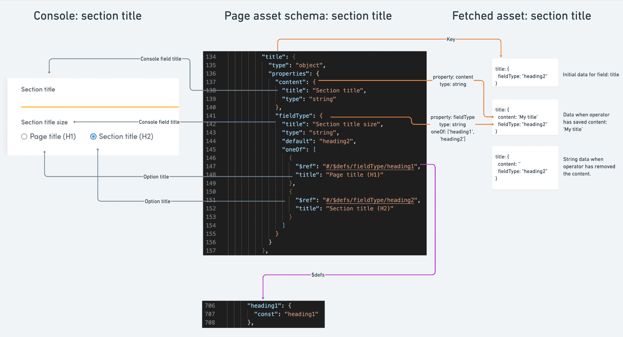 The page asset schema determines the structure of the page in both Flex Console and the page asset fetched from Asset Delivery API.